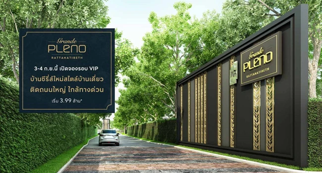 บริษัท เอพี (ไทยแลนด์) จำกัด (มหาชน) เตรียมเปิดให้จองบ้านโครงการใหม่ บ้านซีรีส์ใหม่สไตล์บ้านเดี่ยว และทาวน์โฮม "Grande Pleno รัตนาธิเบศร์" ตั้งอยู่บนทำเลศักยภาพ ติดถนนใหญ่ ใกล้ทางด่วน และใกล้รถไฟฟ้า เพียง 2 นาที โดยเปิดให้จองรอบ VIP เพื่อรับสิทธิพิเศษส่วนลดสูงสุดถึง 400,000 บาท* ในวันที่ 3 - 4 กันยายน 2559 นี้ ราคาเริ่มต้นที่ 3.99 ล้านบาท*
