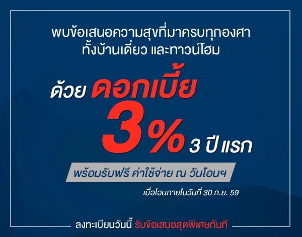 PF จัดโปรฯ บ้านเดี่ยว และทาวน์โฮม "ความสุข 360 องศา" ดอกเบี้ย 3% 3 ปีแรก ฟรีค่าใช้จ่ายวันโอน