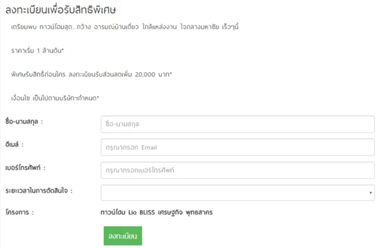 บริษัท ลลิล พร็อพเพอร์ตี้ จำกัด (มหาชน) เปิดให้ลงทะเบียนจองทาวน์โฮมโครงการใหม่ "ไลโอ บลิสซ์ เศรษฐกิจ - พุทธสาคร (Lio BLISS Setthakit - Phutthasakhon)" เตรียมพบ ทาวน์โฮมสุดกว้าง อารมณ์บ้านเดี่ยว ใกล้แหล่งงาน และเซ็นทรัลมหาชัย ใจกลางมหาชัย เร็วๆ นี้ เริ่มเพียง 1 ล้านต้น* พิเศษรับสิทธิ์ก่อนใคร ลงทะเบียนรับส่วนลดเพิ่ม 20,000 บาท ได้แล้ววันนี้ อย่ารอช้าพิเศษแบบนี้ต้องรีบจับจองกันเลยค่ะ