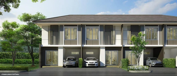 ทาวน์เฮ้าส์ 2 ชั้น หน้ากว้าง 5.7 เมตร ดีไซน์เรียบง่าย ตอบทุกฟังก์ชั่นการใช้งาน มาพร้อมกับการออกแบบสถาปัตยกรรมอย่างลงตัวและกลมกลืน มีรูปแบบพื้นฐานเป็นงานออกแบบที่เรียบง่าย เพิ่มความโปร่ง โล่ง ด้วยประตูบานใหญ่ และหน้าต่าง Enlarge-High window เปิดรับแสงธรรมชาติ และเพิ่มความสวยงาม คัดสรรวัสดุชั้นดี เทียบเท่าบ้านเดี่ยว กระจกเขียวตัดแสงเพื่อช่วยลดความร้อนและรังสียูวี พร้อมกระเบื้องปูพื้นขนาดใหญ่