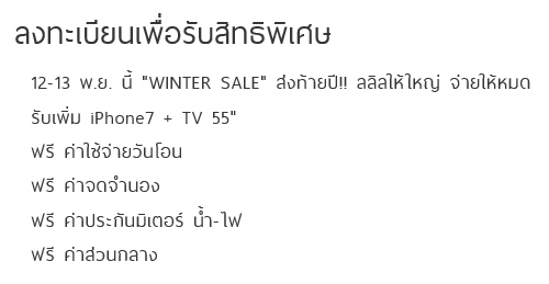 ลลิล พร็อพเพอร์ตี้ จัดแคมเปญใหญ่ "Winter Sale: ส่งท้ายปี ลลิล ให้ใหญ่ จ่ายให้หมด"