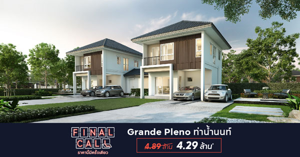 - GRANDE PLENO ท่าน้ำนนท์ บ้านแฝดสไตล์บ้านเดี่ยว สัมผัสกลิ่นอายของความเรียบง่ายทันสมัยสไตล์โมเดิร์นคลาสสิก ท่ามกลางธรรมชาติและความสะดวกสบายใกล้เมือง ติดถนนใหญ่ ติดท่าน้ำนนท์ ใกล้รถไฟฟ้า เริ่ม 4.29 ล้าน*