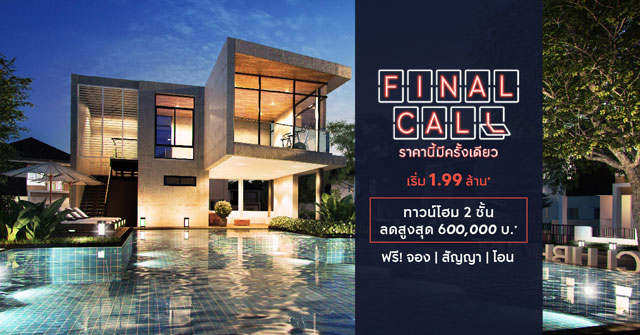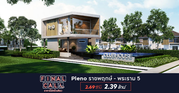 บริษัท เอพี (ไทยแลนด์) จำกัด (มหาชน) จัดแคมเปญ "FINAL CALL" ประกาศครั้งสุดท้าย ราคานี้มีครั้งเดียว กับ Pleno พรีเมี่ยม ทาวน์โฮม 2 ชั้นอารมณ์บ้านเดี่ยวใกล้ทางด่วนและรถไฟฟ้าทุกโครงการ ลดสูงสุด 600,000 บาท* พร้อมฟรีค่าจอง ฟรีค่าสัญญา และฟรีค่าใช้จ่ายวันโอน เริ่ม 1.99 ล้านบาท ตั้งแต่วันที่ 19-30 พ.ย. นี้ ที่ Sales Gallery ทุกโครงการ โดยโครงการที่ร่วมแคมเปญ อาทิ