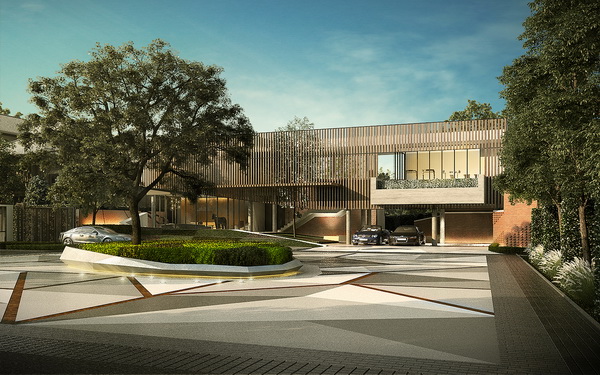 1. Context แรงบันดาลใจในการออกแบบโครงการ ที่ดึงแนวคิดจากบริบทของทำเลและกลุ่มลูกค้ามาสร้างสรรค์การออกแบบ โดยจากข้อมูลวิจัยของลูกค้าบ้านระดับ Luxury ที่ซื้อโครงการของเอสซีฯ คือ แกรนด์ บางกอก บูเลอวาร์ด พระราม 9-ศรีนครินทร์ โครงการแรกที่ประสบความสำเร็จอย่างมาก และเพิ่งปิดโครงการไปล่าสุด พบว่า เป็นกลุ่ม CEO ที่ประสบความสำเร็จ ตั้งแต่อายุยังไม่ถึง 35-40 ปี จึงได้นำ ICON ของความเฉียบคมแห่งวิสัยทัศน์ของการดำเนินธุรกิจ มาสู่รูปแบบของ Geometry ที่พัฒนางานดีไซน์สถาปัตยกรรมให้มีเอกลักษณ์เฉพาะตัว ทั้งตัวคฤหาสน์ รวมถึงพื้นที่ส่วนกลาง อาคารคลับเฮ้าส์