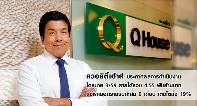 ควอลิตี้เฮ้าส์ ประกาศผลการดำเนินงานไตรมาส 3/59 รายได้รวม 4.55 พันล้านบาท เติบโตถึง 19%