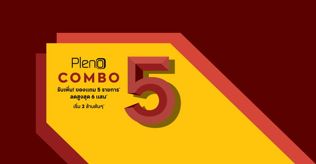 และสำหรับพรีเมียมทาวน์โฮมแบรนด์พลีโน่ และบ้านดีไซน์ใหม่สไตล์บ้านเดี่ยวแบรนด์แกรนด์ พลีโน่ จัดแคมเปญ 'COMBO 5' ให้กับบ้านพร้อมอยู่ใน 9 ทำเล เช่น รัตนาธิเบศร์, สุขสวัสดิ์-พระราม 3, สุขสวัสดิ์ 66, พหลโยธิน-สายไหม, ราชพฤกษ์-พระราม 5, ติวานนท์-แจ้งวัฒนะ และบางใหญ่ เป็นต้น ราคาเริ่มต้นเพียง 2.49 - 4.29 ล้านบาท รับเพิ่ม! ของแถมพิเศษ 5 รายการ ฟรีแอร์ ฟรีค่าใช้จ่าย ณ วันโอน และส่วนลดมูลค่าสูงสุดถึง 600,000 บาท ตั้งแต่วันนี้ - 30 เมษายนนี้