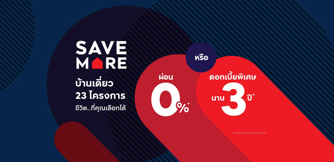 ด้าน นายภมร ประเสริฐสรรค์ รองกรรมการผู้อำนวยการ สายงานพัฒนาธุรกิจกลุ่มสินค้าบ้านเดี่ยวและทาวน์โฮม กล่าวว่า "กลุ่มสินค้าแนวราบเสนอโปรโมชั่นพิเศษมากมาย ประกอบด้วย แคมเปญภายใต้ชื่อ 'SAVE MORE - ชีวิตที่คุณเลือกได้ อิสระทางการเงินที่คุณเลือกเอง' ให้กับผู้สนใจโครงการบ้านเดี่ยวพร้อมอยู่กว่า 23 โครงการ ภายใต้แบรนด์ THE PALAZZO, SOUL, THE CITY, MIND และ CENTRO ราคาเริ่มต้น 4.39 ล้านบาท รับส่วนลดเพิ่มสูงสุด 1,000,000 บาท ผ่อน 0% นาน 1 ปี หรือ อัตราดอกเบี้ยพิเศษ 3.33% นาน 3 ปี ตั้งแต่วันนี้ - 16 เมษายนนี้