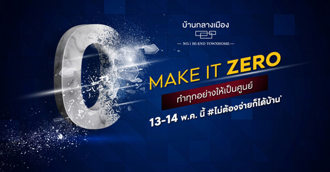 บริษัท เอพี (ไทยแลนด์) จำกัด (มหาชน) จัดโปรโมชั่นสนองผู้ที่กำลังมองหาบ้านพร้อมอยู่ ในชื่อโปรฯ "Make it Zero ทำทุกอย่างให้เป็นศูนย์" พร้อมติด #ไม่ต้องจ่ายก็ได้บ้าน ยกทัพโครงการ บ้านกลางเมือง ถึง 16 โครงการ ทำเลพร้อมอยู่ ใกล้รถไฟฟ้า ติดถนนใหญ่และทางด่วน ในวันที่ 13 - 14 พฤษภาคม 2560 นี้