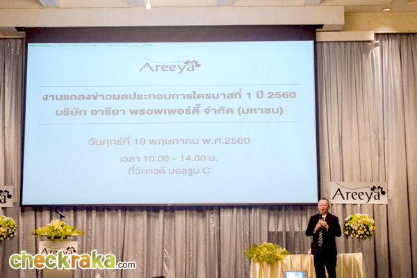นายวิวัฒน์ เลาหพูนรังษี กรรมการบริหาร บริษัท อารียา พรอพเพอร์ตี้ จำกัด (มหาชน) เปิดเผยว่าผลประกอบการไตรมาส 1 ปี 2560 มียอดขาย 2,218 ล้านบาท เติบโต 11% เมื่อเทียบกับระยะเดียวกันปีก่อน มียอดรับรู้ราย หรือยอดโอน จำนวน 1,152 ล้านบาท เพิ่มขึ้นเล็กน้อยจากระยะเดียวกันปีก่อน โดยมาจาก 30 โครงการ แบ่งเป็นโครงการบ้านแนวราบ 25 โครงการ และแนวสูง 5 โครงการ ซึ่งไม่เป็นไปตามเป้าหมายที่บริษัทวางไว้ เนื่องจากตลาดอสังหาริมทรัพย์อยู่ในสภาวะทรงตัว เพราะขาดปัจจัยสนับสนุนจากมาตรการของภาครัฐเช่นเดียวกับปี 2559 แม้ว่ากำลังซื้อในช่วงไตรมาสแรกปีนี้ปรับเพิ่มขึ้นก็ตาม ประกอบกับสถาบันการเงินมีความกังวลเกี่ยวกับภาระหนี้ครัวเรือนที่ยังคงอยู่ในระดับสูง และสินเชื่อที่ไม่ก่อให้เกิดรายได้ (NPL) ที่ปรับเพิ่มขึ้น ทำให้ผลการขอสินเชื่อที่อยู่อาศัยได้รับอนุมัติน้อยกว่าที่คาดไว้