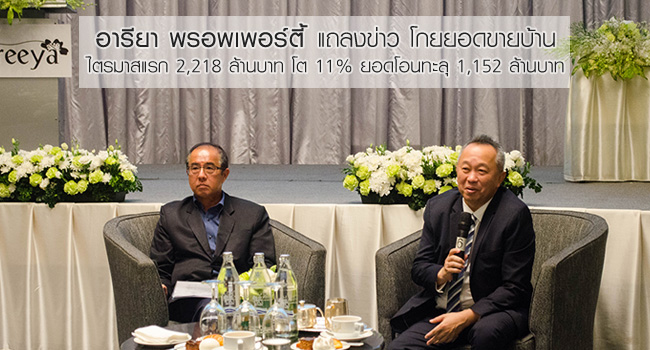 อารียาฯ โกยยอดขายบ้านไตรมาสแรก 2,218 ล้านบาท โต 11% ยอดโอนทะลุ 1,152 ล้านบาท