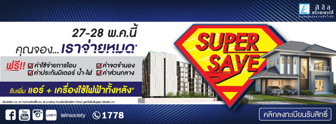 บริษัท ลลิล พร็อพเพอร์ตี้ จำกัด (มหาชน) ผู้นำในธุรกิจพัฒนาอสังหาริมทรัพย์ เดินหน้ารุกตลาดไตรมาส 2 หลังยอดขายเติบโตต่อเนื่องสวนกระแสตลาดชะลอตัว โดยการอัดแคมเปญ "SUPER SAVE คุณจอง...เราจ่ายหมด" เพียงจองภายในวันที่ 27 - 28 พฤษภาคมนี้ ซึ่งมีโครงการทั้งบ้านเดี่ยว บ้านแนวคิดใหม่ ทาวน์โฮมและคอนโด เข้าร่วมโปรโมชั่นมากมายบนพื้นที่ทำเลทอง รองรับไลฟ์สไตล์คนรุ่นใหม่ ในเขตกรุงเทพฯและปริมณฑล กว่า 20 โครงการ