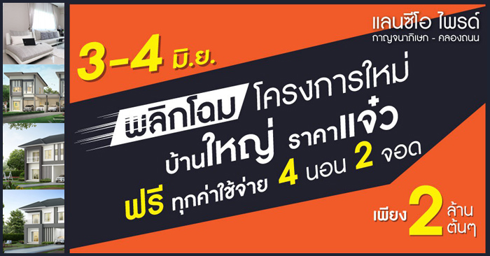 พลิกโฉมโครงการใหม่ บ้านใหญ่ ราคาแจ๋ว ฟรี ทุกค่าใช้จ่ายกับบ้าน 4 ห้องนอน 2 ที่จอดรถ แลนซีโอ ไพรด์ กาญจนาภิเษก - คลองถนน (Lanceo Pride Kanchanapisek - Khlongthanon) เตรียมพบกับบ้าน บ้านใหญ่ ราคาแจ๋ว 3 - 4 มิถุยายนนี้ จองพียง 5,000 บาท ฟรี ทุกค่าใช้จ่าย ที่สุดของทำเล กาญจนาภิเษก - คลองถนน ไม่ไกลจากบางใหญ่ และรถไฟฟ้าสายสีม่วง เพียง 2 ล้านต้น*
