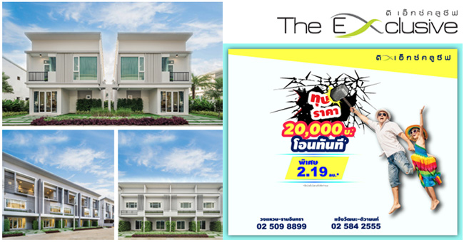 ดิเอ็กซ์คลูซีฟ จัดหนักส่งโปรฯ "ทุบราคา ท้ามาจอง" โครงการ ทาวน์โฮม/บ้านแฝด เริ่มเพียง 2.19 ลบ.*