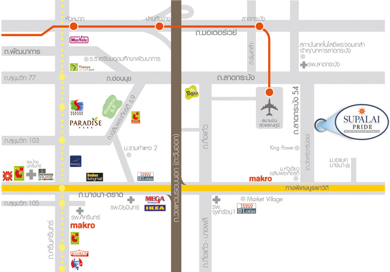 โครงการ ศุภาลัย ไพรด์ บางนา-ลาดกระบัง บ้านหลากสไตล์หลายฟังก์ชั่น เหมาะกับทุกขนาดครอบครัว พร้อมสิ่งอำนวยความสะดวกครบครันภายในโครงการ มีพื้นที่สีเขียวรวมกว่า 5 ไร่ ให้คุณได้ใกล้ชิดธรรมชาติ เดินทางสะดวกสบาย เข้าออกถนนสายสำคัญได้หลายเส้นทาง ทั้ง ถนนลาดกระบัง, ถนนบางนา-ตราด, ถนนกิ่งแก้ว ทางยกระดับบูรพาวิถี ถนนวงแหวนรอบนอกตะวันออก ใกล้สนามบินสุวรรณภูมิ อีกทั้งยังใกล้แหล่งช็อปปิ้ง และห้างสรรพสินค้าขนาดใหญ่หลายแห่ง