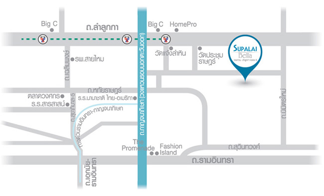 แผนที่ตั้งโครงการ ศุภาลัย เบลล่า วงแหวน - ลำลูกกา คลอง 6