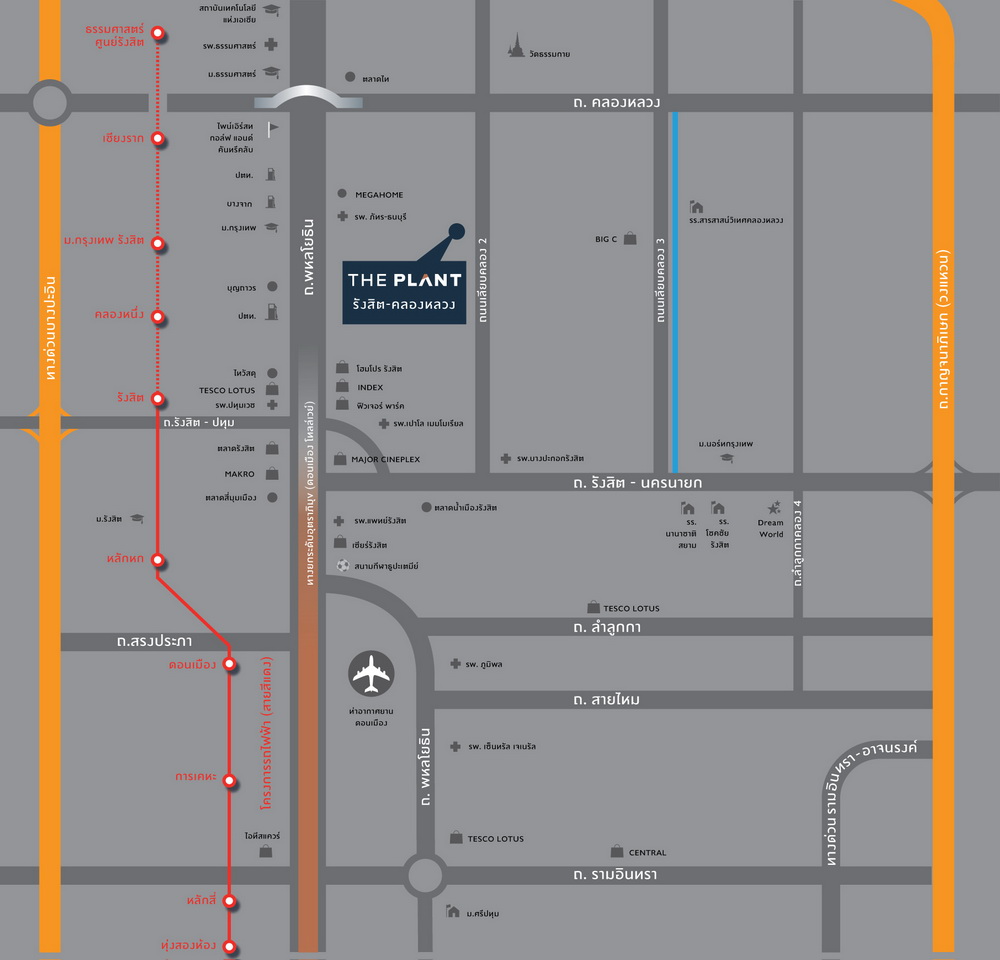 โครงการ เดอะ แพลนท์ รังสิต - คลองหลวง ตั้งอยู่บนถนนรังสิตคลองสอง อำเภอคลองสอง ตำบลคลองหลวง จังหวัดปทุมธานี ทำเลใกล้เมือง เดินทางสะดวกใกล้รถไฟฟ้า ใกล้ทางด่วน