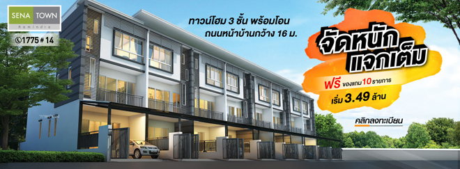 ห้ามพลาด!! กับโปรฯ จัดหนัก แถมให้เต็ม กับโครงการ เสนา ทาวน์ รามอินทรา (Sena Town Ramintra) ทาวน์โฮม 3 ชั้น หน้ากว้าง 5 เมตร ปรับ Function ได้ ทั้งการอยู่อาศัยและการทำโฮมออฟฟิศในสถานที่เดียวกัน ทาวน์โฮมพร้อมโอน ฟรีของแถมกว่า 10 รายการ สะดวกสบายเนื่องจากไม่ไกลจากรถไฟฟ้าสายสีชมพู เริ่ม 3.49 ล้านบาท