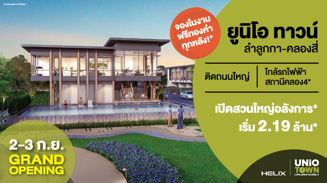 ยูนิโอ ทาวน์ ลำลูกกา คลอง 4 Grand opening 2-3 ก.ย.นี้ จองในงาน ฟรีทองคำ ทุกหลัง เพียง 2 วันเท่านั้น*