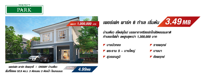 เพอร์เฟค พาร์ค 6 ทำเล บ้านเดี่ยว สไตล์ยุโรป บรรยากาศรีสอร์ทใกล้ชิดธรรมชาติ ทำเลรถไฟฟ้า ลดสูงสุดกว่า 1,300,000 บาท เริ่มต้น 3.49 ล้านบาท
