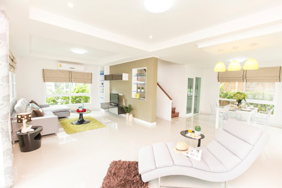 4. แบบบ้านศุภฤทัย - บ้านเดี่ยว 2 ชั้น พื้นที่ใช้สอย 197 ตร.ม. สร้างบนที่ดินตั้งแต่ 57 ตร.ว. ขึ้นไป ขนาด 4 ห้องนอน 3 ห้องน้ำ 1 ส่วนพักผ่อน และที่จอดรถ 2 คัน