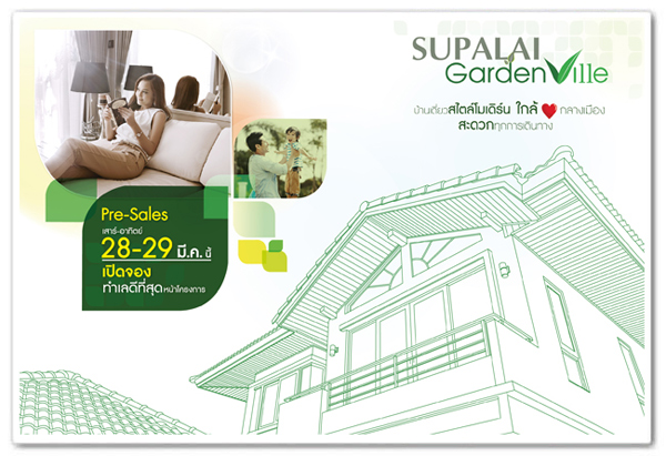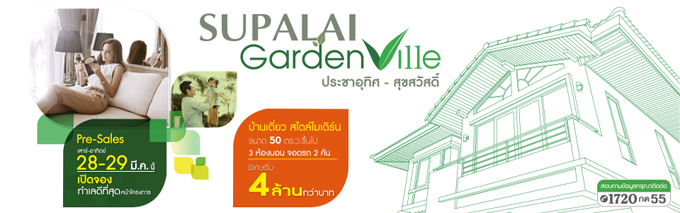 บริษัท ศุภาลัย จำกัด(มหาชน) ได้เปิดตัวบ้านโครงการใหม่ "ศุภาลัย การ์เด้นวิลล์ ประชาอุทิศ-สุขสวัสดิ์ (Supalai Garden Ville Prachauthit - Suksawat)" บ้านเดี่ยว 2 ชั้น แบบบ้านทันสมัย สไตล์ Modern เน้นหันทิศเหนือ-ใต้ ให้สอดคล้องกับทิศทางลมและหลบแสงแดด พร้อมออกแบบบ้านเน้นการอนุรักษ์พลังงาน โดยมีบานหน้าต่างขนาดใหญ่ ช่วยรับแสงธรรมชาติและลมพัดผ่านได้เป็นอย่างดี เนื้อที่โครงการ 60-0-83 ไร่ มีขนาดที่ดินตั้งแต่ 50 ตร.ว. ขึ้นไป พื้นที่ใช้สอย ตั้งแต่ 135 - 184 ตร.ม. พร้อมสิ่งอำนวยความสะดวกครบครัน ทั้งสวนส่วนกลางขนาดใหญ่ใกล้ชิดธรรมชาติ สโมสร ที่มีสระว่ายน้ำ และระบบรักษาความปลอดภัย CCTV ตลอด 24 ชม.
