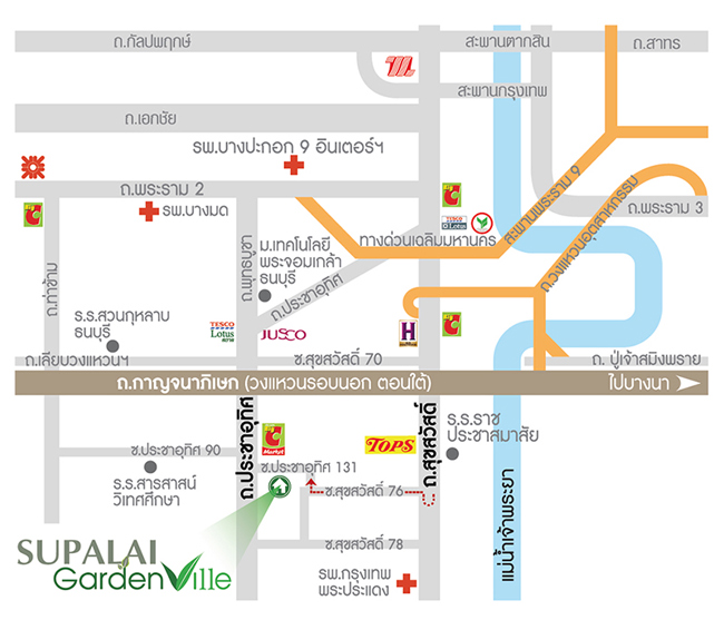แผนที่โครงการ ศุภาลัย การ์เด้นวิลล์ ประชาอุทิศ-สุขสวัสดิ์