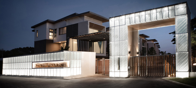 ทางเข้าโครงการโดดเด่นเป็นสง่า ตกแต่งด้วยกระจก TEMPERED