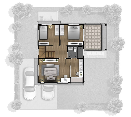 1. แบบบ้าน เฮือนบุรา - บ้านเดี่ยว 2 ชั้น พื้นที่ใช้สอย 140 ตร.ม. ขนาดที่ดินตั้งแต่ 70 ตร.วา 4 ห้องนอน 2 ห้องน้ำ 1 ห้องครัว พร้อมส่วนนั่งเล่นและรับประทานอาหาร ที่จอดรถ 2 คัน