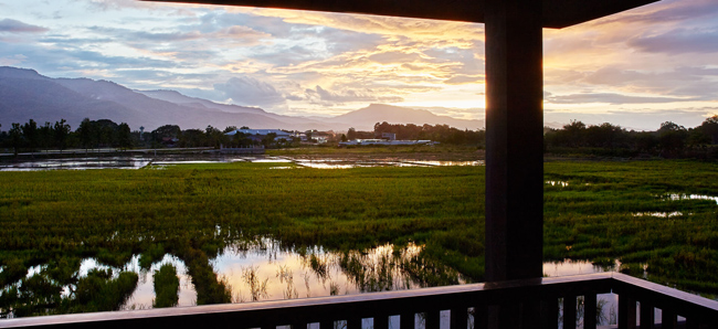 บรรยากาศโครงการอารมณ์รีสอร์ท ที่โอบล้อมด้วยนาข้าว, ลมหนาว, สายหมอก และวิวทิวเขา