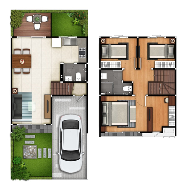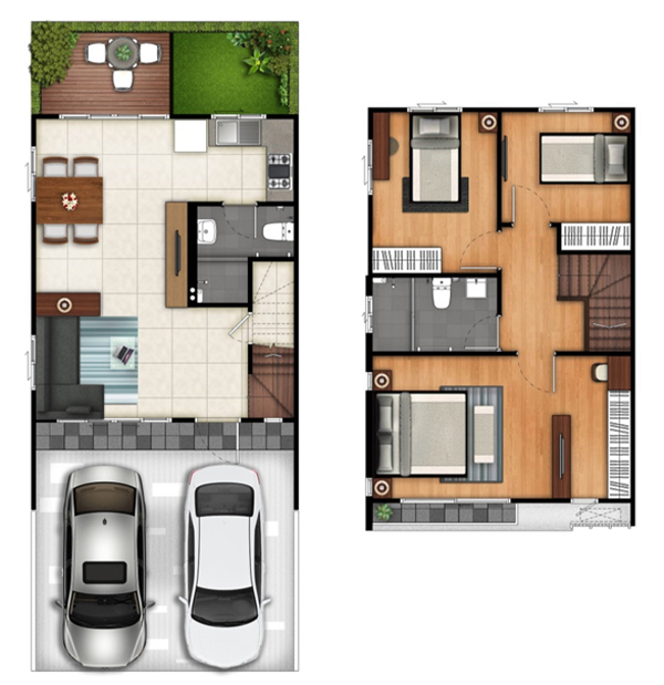 1. ทาวน์โฮม 2 ชั้น HX 1.5 - ทาวน์โฮม 2 ชั้น หน้ากว้าง 5.7 เมตร พื้นที่ใช้สอย 96.50 ตร.ม. 3 ห้องนอน 2 ห้องน้ำ 1 ห้องรับแขก 1 ส่วนรับประทานอาหาร 1 Pantry ที่จอดรถ 1 คัน มีจำนวน 167 ยูนิต