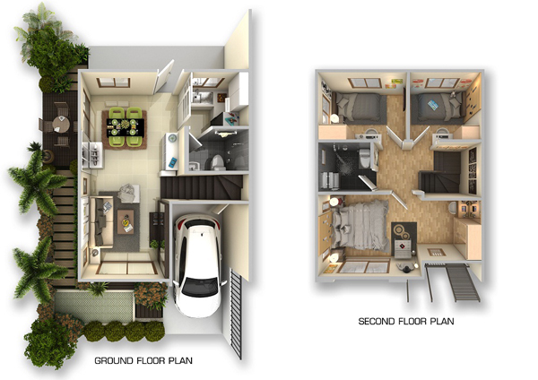 2. Sonata B - ทาวน์โฮม 2 ชั้น หน้ากว้าง 5.7 เมตร พื้นที่ใช้สอย 105 ที่ดินเริ่มต้น 20.4 ตร.ว. ตร.ม. 3 ห้องนอน 2 ห้องน้ำ ส่วนรับแขกเชื่อมต่อกับส่วนรับประทานอาหาร และครัว ที่จอดรถ 2 คัน
