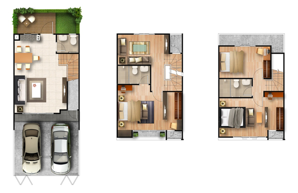 1. แบบบ้าน HM - ทาวน์โฮม 3 ชั้น หน้ากว้าง 5.5 เมตร พื้นที่ใช้สอย 160 ตร.ม. 3 ห้องนอน 3 ห้องน้ำ ห้องรับแขก 1 ห้องครัว 1 ห้องพักผ่อนชั้น 2 จอดรถ 2 คัน