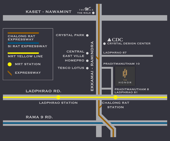 - ตั้งอยู่บนทำเลแห่งอนาคต ใกล้ทางด่วนรามอินทรา-อาจณรงค์ และไม่ไกลจากสถานีรถไฟฟ้าสายสีเหลืองในอนาคต