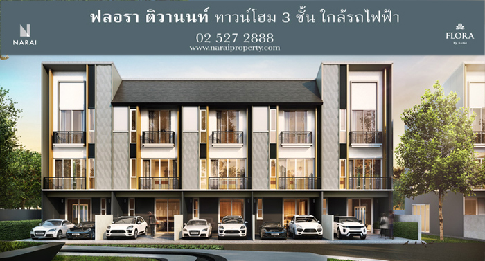 บริษัท นารายณ์พร็อพเพอร์ตี้ จำกัด (มหาชน) ได้เปิดตัวทาวน์โฮมโครงการใหม่ "ฟลอรา ติวานนท์ (Flora Tiwanon)" โครงการทาวน์โฮมสมบูรณ์แบบแห่งใหม่ บนทำเลศักยภาพแห่งอนาคต ติดถนนเลี่ยงเมืองนนท์ เดินทางสะดวกรวดเร็ว ที่เนรมิตให้ทุกการเดินทางกลายเป็นความใกล้ที่แสนสะดวกสบาย สามารถเชื่อมต่อกับรถไฟฟ้า และถนนหลักอื่นๆ ได้ง่าย ซึ่งโครงการนี้มีลักษณะเป็นทาวน์โฮม 3 ชั้น 2 แบบ หน้ากว้าง 5 เมตร ขนาดแปลงที่ดิน 18.7 - 55.2 ตร.ว. พื้นที่ใช้สอย 167 ตร.ม. มีจำนวนบ้าน 234 ยูนิต บนพื้นที่โครงการ 22-1-68.6 ไร่ พร้อมสิ่งอำนวยความสะดวกมากมาย ทั้งคลับเฮ้าส์ สระว่ายน้ำ ฟิตเนส และสวนสวยภายในโครงการ