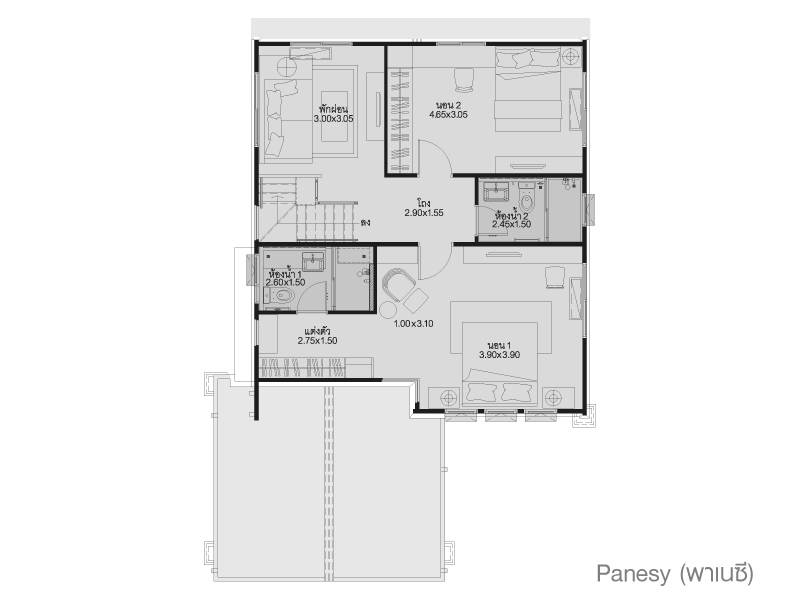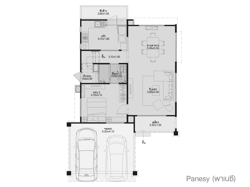 1. Panesy - บ้านเดี่ยว 2 ชั้น พื้นที่ใช้สอย 160 ตร.ม. ขนาดที่ดินตั้งแต่ 70 ตร.วา 3 ห้องนอน 3 ห้องน้ำ 1 ห้องพักผ่อน พร้อมพื้นที่รับแขก และพื้นที่รับประทานอาหาร ครัวไทยแยกส่วน และที่จอดรถ 2 คัน