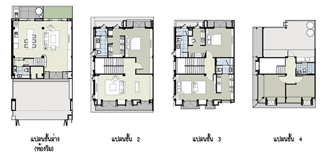 ทาวน์โฮมสไตล์ยุโรป - ทาวน์โฮม 4 ชั้น พื้นที่ใช้สอย 406 ตร.ม. 5 ห้องนอน 5 ห้องน้ำ 3 ที่จอดรถ