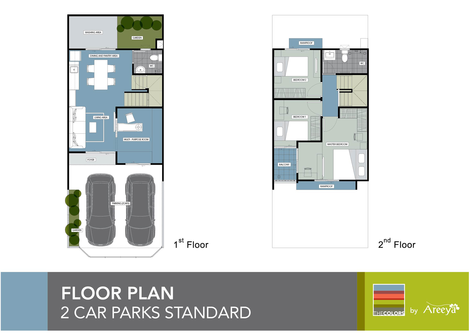 Pastel A - ทาวน์โฮม 2 ชั้น สไตล์โมเดิร์น ทรอปิคอล 4 ห้องนอน 2 ห้องน้ำ 2 ที่จอดรถ พื้นที่ใช้สอย 181 ตร.ม.