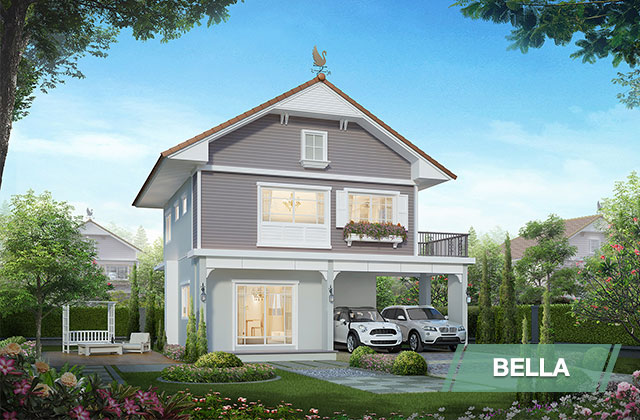 2. Bella - บ้านเดี่ยว 2 ชั้น พื้นที่ใช้สอย 130 ตร.ม. 3 ห้องนอน, 3 ห้องน้ำ, 1 ห้องนั่งเล่น, 1 ส่วนรับประทานอาหาร, 1 ห้องครัว, 1 ระเบียงส่วนตัว พร้อมที่จอดรถในร่ม 2 คัน