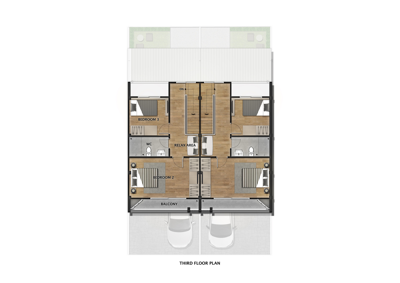 2. DA VINCI TOWN HOME - ทาวน์โฮม 3 ชั้น พื้นที่ใช้สอย 160 ตารางเมตร ที่ดิน 24-49 ตร.ม หน้ากว้าง 5.5-5.7 เมตร 4 ห้องนอน 3 ห้องน้ำ ห้องรับแขก ห้องพักผ่อน ห้องรับประทานอาหาร ห้องครัว ที่จอดรถ 2 คันจำนวน 30 แปลง