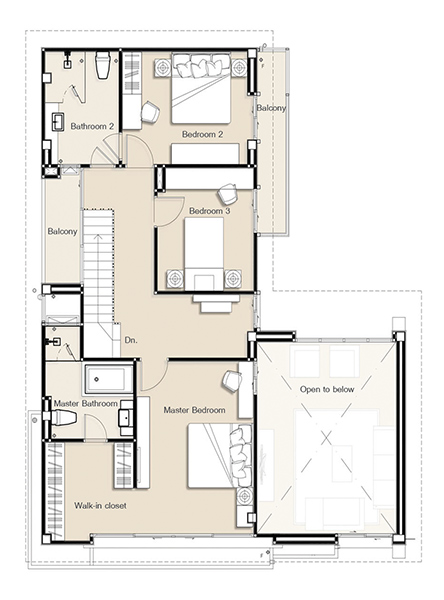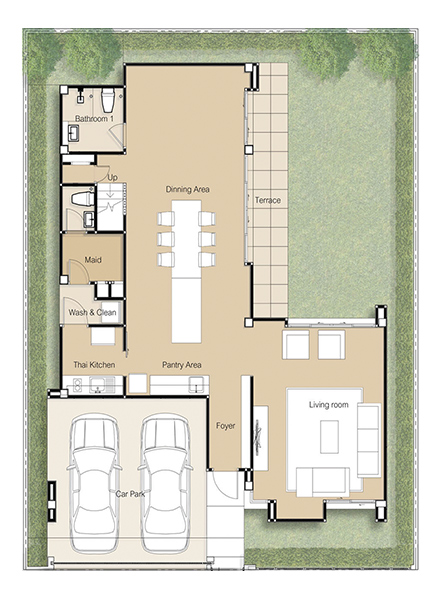 แบบบ้าน AIAM และ แบบบ้าน AIDIA บ้านเดี่ยว 2 ชั้น แบบ L- Shape พื้นที่ใช้สอย Function โดดเด่นด้วยพื้นที่ Double volume ภายในห้องนั่งเล่น และสวนภายในที่ให้ ความเป็นส่วนตัว ปรับเปลี่ยนได้ในแบบที่คุณอยากให้เป็น กับห้องนอน Master ขนาดใหญ่ สะดวกสบายกับพื้นที่ห้องน้ำ พร้อมอ่างอาบน้ำ และโซน shower ปรับเปลี่ยน Function พื้นที่อเนกประสงค์ชั้น 2 เป็นห้องพระ หรือมุมอ่านหนังสือได้ตามใจคุณ