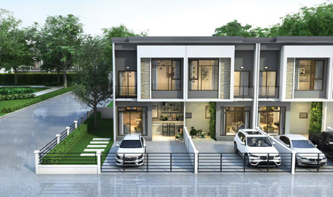 ทาวน์โฮม 2 ชั้น - หน้ากว้าง 5.5 เมตร พื้นที่ใช้สอย 126 ตร.ม. 3 ห้องนอน, 2 ห้องน้ำ และที่จอดรถ 2 คัน