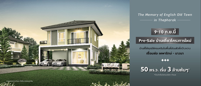 9-10 ก.ย.นี้ เปิดจองบ้านเดี่ยวโครงการใหม่ 50 ตร.ว. บน ถ.เทพารักษ์ เริ่ม 3 ล้านต้นๆ*