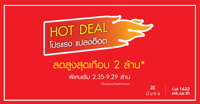 MK จัดโปร HOTDEAL โปรแรง แปลงฮ็อต ลดสูงสุดกว่า 2 ล้าน* กับบ้าน 6 โครงการ วันนี้ - 30 ก.ย. เท่านั้น
