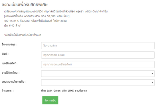 ท่านที่สนใจสามารถลงทะเบียนรับเอกสิทธิ์พิเศษ เป็นเจ้าของบ้านแต่งเฟอร์ทั้งหลัง พร้อมสวนสวย*