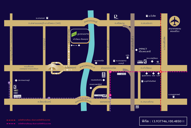 โครงการตั้งอยู่บนทำเลศักยภาพ บนถนนหอการค้าไทย (ถนนตัดใหม่) เชื่อมต่อ ถนนแจ้งวัฒนะ และถนนชัยพฤกษ์ เดินทางสะดวกด้วยทางด่วนศรีรัช 9 กม. ใกล้ห้าแยกปากเกร็ด และเซ็นทรัลแจ้งวัฒนะ