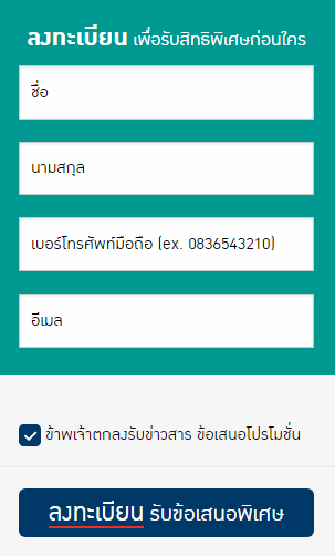 ท่านที่สนใจสามารถลงทะเบียนเพื่อรับข้อเสนอพิเศษและข้อมูลเพิ่มเติมได้ที่ลิงก์ด้านล่างนี้