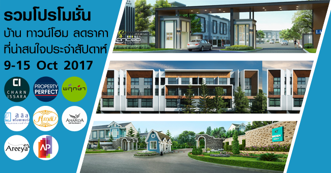 รวมโปรโมชั่นบ้าน ทาวน์โฮม ลดราคาที่น่าสนใจประจำสัปดาห์ 9-15 ต.ค. 2560