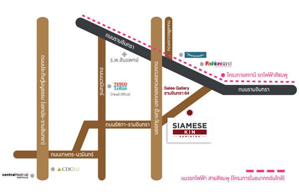 โครงการตั้งอยู่บนทำเลศักยภาพที่เหนือชั้น บนถนนรามอินทรา โอบล้อมไปด้วยความสะดวกสบายทุกรูปแบบ พร้อมเชื่อมต่อกับถนนหลายเส้นทาง ลื่นไหลตรงสู่เมืองด้วยสถานีรถไฟฟ้าสายสีชมพู และอิ่มเอมกับไลฟ์สไตล์หลากหลายด้วย ห้างแฟชั่นไอส์แลนด์ และเดอะพรอมมานาด