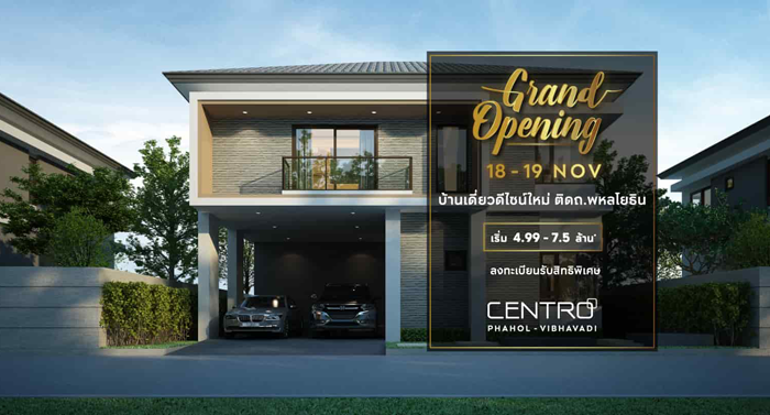 18-19 พ.ย.นี้ พบบ้านเดี่ยวโครงการใหม่ เซนโทร พหลฯ - วิภาวดี (Centro Phahol - Vibhavadi) เริ่ม 4.99-8 ล้าน* ลงทะเบียนรับส่วนลดพิเศษเพิ่ม 50,000 บาท* ได้ที่ลิงก์ด้านล่างนี้