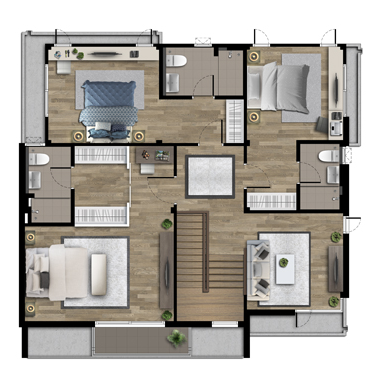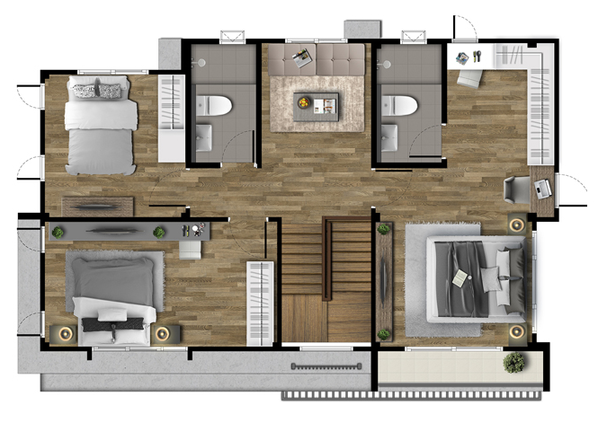 4. แบบบ้าน SUNSHINE - บ้านเดี่ยว 2 ชั้น พื้นที่ใช้สอย 200 ตร.ม. เนื้อที่ดินเริ่มต้น 50 ตร.วา ขนาด 4 ห้องนอน 4 ห้องน้ำ 2 ห้องนั่งเล่น ที่จอดรถ 2 คัน